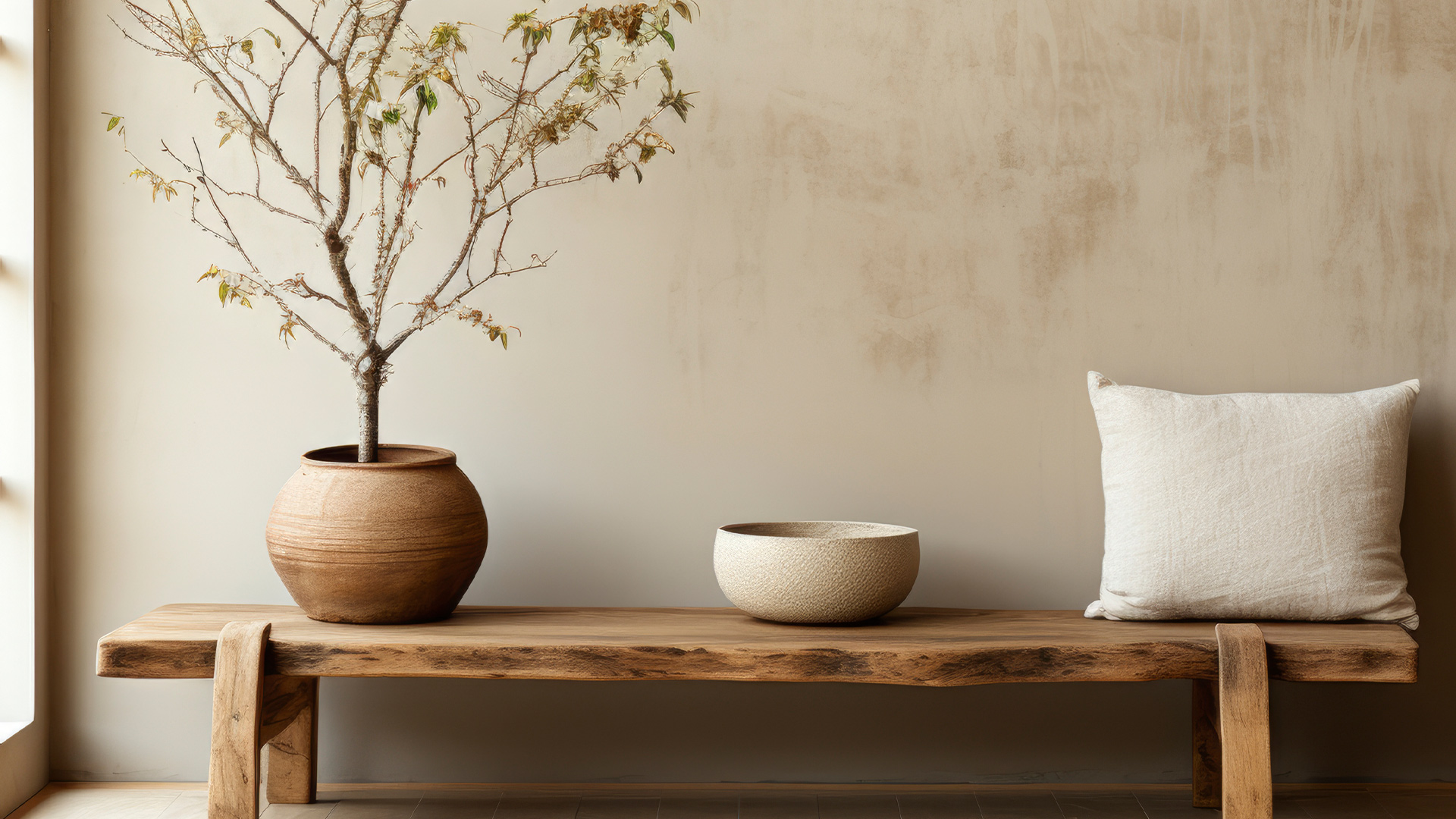 Se evita el exceso de adornos y se busca la simplicidad en la decoración. Los colores neutros y tonos tierra son predominantes, y se utilizan materiales como la madera, la piedra y las fibras naturales para crear una conexión visual y emocional con la naturaleza.